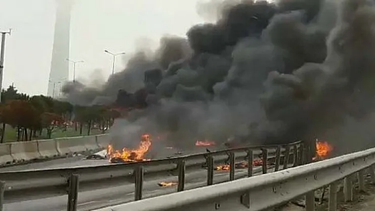 Beylikdüzü'nde düşen helikopter nedeniyle D100 karayolu trafiğe kapandı.
