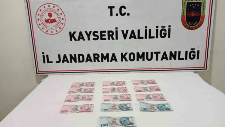Kayseri'de jandarma ekipleri tarafından yapılan çalışmalarda bir şahsın üzerinden 2 bin 300 TL sahte para ele geçirildi.