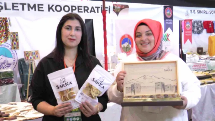 Sarıoğlan Kadın Kooperatifi üyeleri, Kayseri Kadın Kooperatifleri Fuarı’nda açtıkları stantlarında el yapımı ve doğal olarak ürettikleri çikolataları sergiliyor.