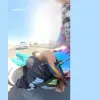 İlk bakışta karşılıklı yol verme tartışması gibi görünen olayın, araçta bulunan bir kadın ve bir erkeğin saldırısı sonrası büyüdüğü ortaya çıktı. Olay motosiklet sürücüsünün kask kamerasına saniye saniye kaydedildi.