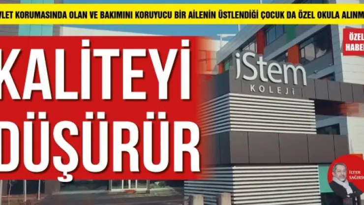Her özel okul; öğrenci kapasitesinin yüzde 3’ü oranında “şehit ve gazi çocukları ile koruma altındaki çocukların velileri tarafından talep olması halinde ücretsiz olarak okutur” şeklindeki yönetmelik gereği İstem Koleji’ne giden bir koruyucu ailenin velisi olduğu ortaokul öğrencisi okula “eğitim kalitesini düşürür” gerekçesiyle alınmadı.