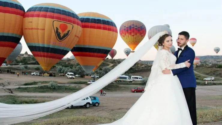 Dünya genelinde beğeni toplayan Kapadokya açık hava müzesi ziyaretçilerini büyüsünde bırakmaya devam ediyor. Eşsiz görüntüleri hatıra olarak saklamak isteyenler fotoğraf çekmek için değişik yöntemler deniyor. Evliliğe hazırlanan çiftlerin de tercihi peribacaları ve Kapadokya’nın simgesi haline gelen Balonlar oldu.