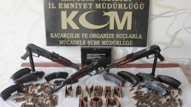 Kayseri'de polis ekiplerinin yaptığı operasyonda, 3 adet Kalaşnikof marka silah ve silahlara ait 18 adet dolu şarjör ele geçirildi.
