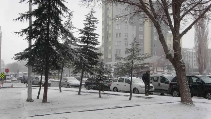 Kayseri'de öğle saatlerinde etkisini gösteren kar yağışı, kenti beyaza bürüdü.