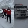 AFAD’ın organizasyonu ve çağrısı üzerine harekete geçen ekipler, yolda kalan araçları kurtararak vatandaşların güvenliğini sağladı. Bununla da yetinmeyen ekip, araç içindeki yolculara yiyecek ve sıcak çay ikram ederek soğukta moral verdi.