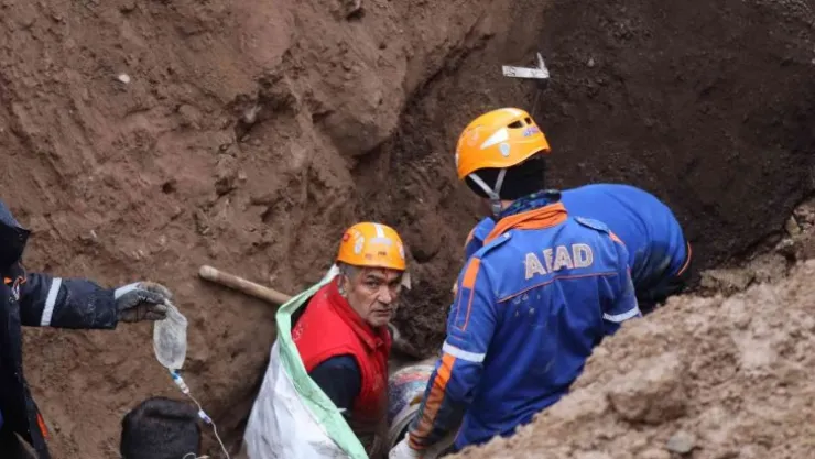 Ekiplerin yaklaşık 5 metrelik çukurda mahsur kalan işçiyi kurtarmak için başlattığı çalışma sürüyor.