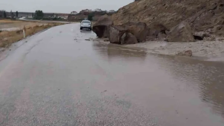Kayseri’nin Bünyan ilçesinde meydana gelen sel nedeniyle kayalar yola düşerken, bazı evleri de su bastı.
