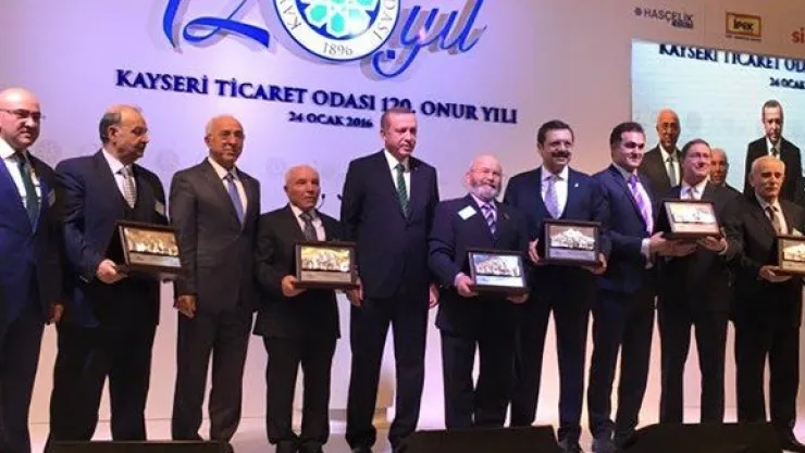 Cumhurbaşkanı heyetinde Ekonomi Bakanı Mustafa Elitaş, Enerji ve Tabii Kaynaklar Bakanı Berat Albayrak, Ulaştırma Denizcilik ve Haberleşme Bakanı Binali Yıldırım, Gençlik ve Spor Bakanı Akif Çağatay Kılıç, Başbakan Başdanışmanı Ahmet Doğan, Kayseri milletvekilleri, TOBB Başkanı Rifat Hisarcıklıoğlu gibi isimler dikkat çekti. Saat 18.00’da Kayseri Erkilet Havaalanı’na inen Cumhurbaşkanı Erdoğan Ommer Otel’deki 'Kayseri Ticaret Odası 120. onur yılı' programına katıldı. Programda açılış konuşmasını KTO Başkanı Mahmut Hiçyılmaz yaptı. Hiçyılmaz, “Birlik ve beraberliğimize kasteden Paralel Yapı amacına ulaşamayacaktır. Mücadelemizde sonuna kadar yanınızdayız” dedi.