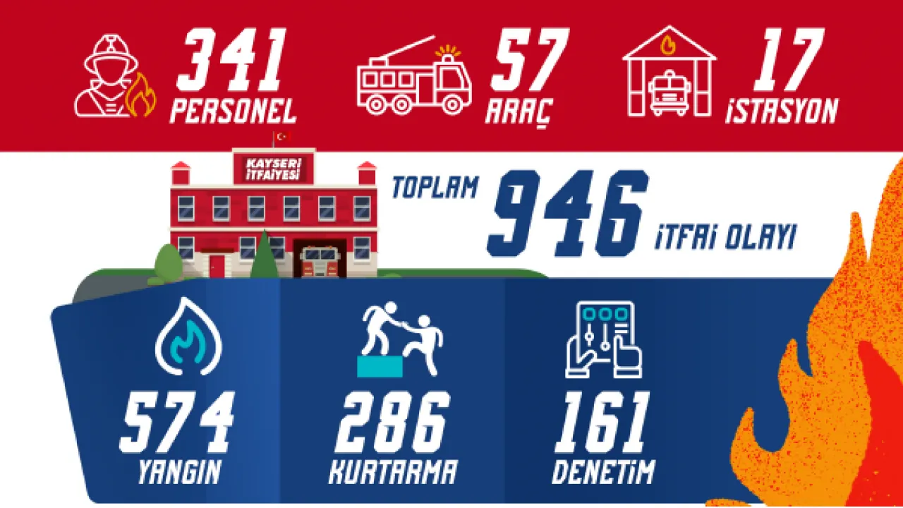 Yangınlardan kurtarma operasyonlarına, trafik kazalarından su baskınlarına kadar sorumluluk alanına giren her konuda büyük bir özveri ile görevini yürüten Kayseri Büyükşehir Belediyesi İtfaiye Daire Başkanlığı, aynı zamanda binlerce vatandaşa verdiği eğitimlerin yanı sıra titiz denetimlerle de riskleri en aza indiriyor.