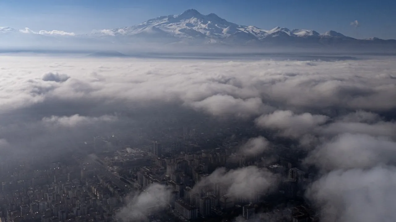 Kayseri'de sabah saatlerinde etkili olan yoğun sis, vatandaşlara zor anlar yaşatırken, fotoğraf sanatçısı Osman Arabacı'nın dronuyla çektiği görüntüler izleyenleri büyüledi.