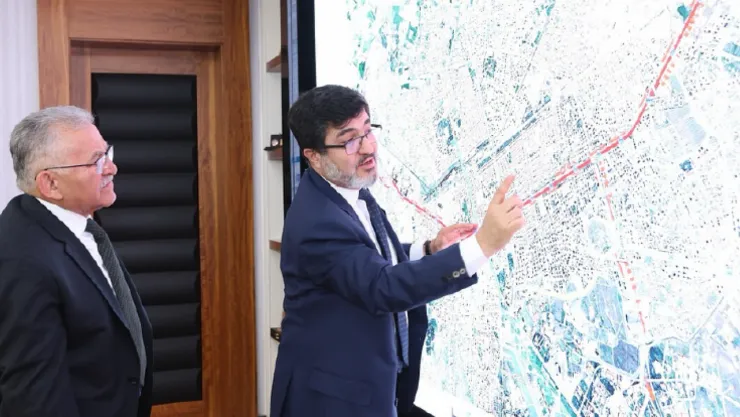 Ulaştırma ve Altyapı Bakanlığı Altyapı Yatırımları Genel Müdürü Dr. Yalçın Eyigün'ü makamında ağırlayan Kayseri Büyükşehir Belediye Başkanı Dr. Memduh Büyükkılıç, kentin toplu ulaşım vizyonuna ve yeni raylı sistem hattına yönelik önemli bir istişare gerçekleştirdi.