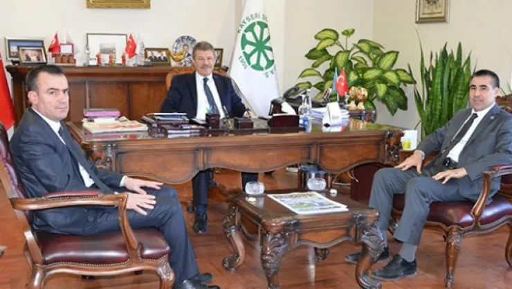 Kayseri Serbest Muhasebeci ve Mali Müşavirler Odası Başkanı Baki Gümüşoluk, Genel Sekreter Ali Yedikaya, Mali Müşavirler odası Müdürü Ahmet Kızıltoprak ile birlikte Kayseri Pancar Kooperatifi Yönetim Kurulu Başkanı Hüseyin Akay'ı ziyaret ettiler.