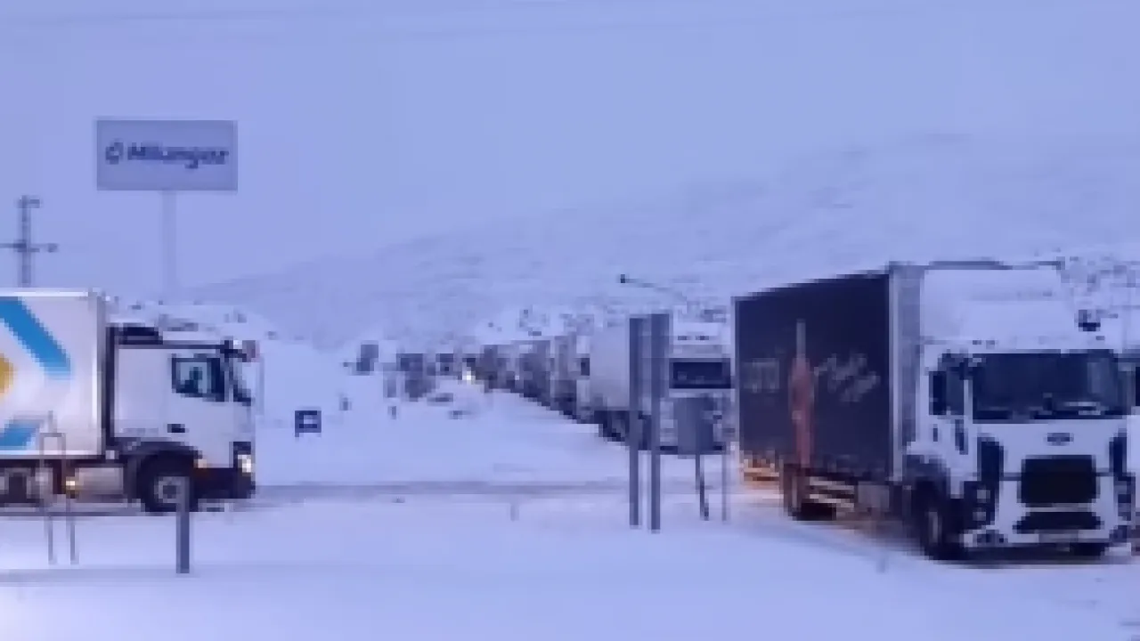 Kayseri / Pınarbaşı Karayolu: Hava kapalı, hafif kar yağışı mevcut, zemin karlı, yol çekici ve tır trafiğe kapalı.