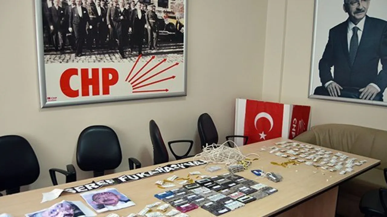 CHP Kayseri İl Başkanlığı'na gece kimliği belirsiz kişiler tarafından çok sayıda kaset, acı biberli notlar ve siyah çelenk bırakıldı.