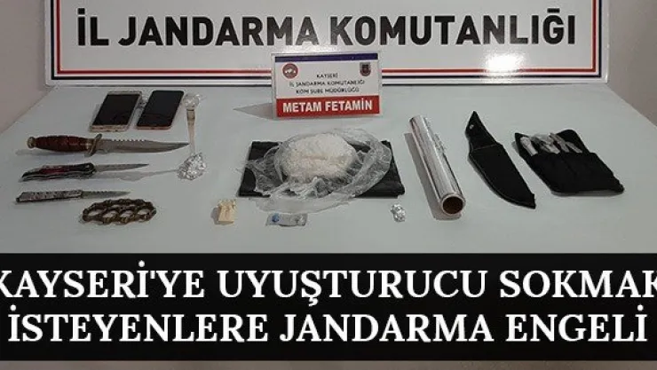 Edinilen bilgiye göre, jandarma ekipleri tarafından Gaziantep'ten Kayseri'ye giriş yapan ve durumundan şüphelenilen bir otomobili Sarız ilçesinde durdurdu. Otomobilde yapılan aramalarda 280 gram metamfetamin, alüminyum folyo, 4 adet bıçak, 1 adet muşta ve uyuşturucu hap ele geçirildi. Ele geçirilen malzemelere el konulurken Y.K. ve F.S. gözaltına alındı.