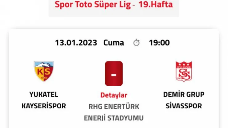 Kayserispor ligin 19’uncu haftasında Sivasspor ile karşılaşacak. Haftanın açılış maçı olan Anadolu derbisinin saati 17.00 olarak açıklanmıştı. Müsabakanın saati 19.00 olarak değiştirildi.
