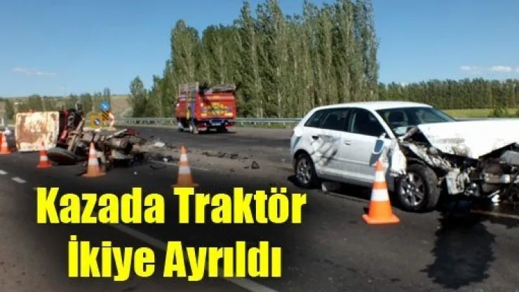 Sivas'tan Kayseri'ye gitmekte olan traktör kaza sonucu ortadan ikiye bölündü.