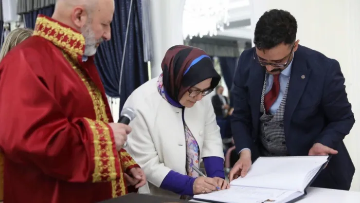 Modern nikah salonunda nikâhlarını kıyan çiftler, unutulmaz anlarını ölümsüzleştirmek için aileleriyle birlikte fotoğraf çektirmeyi de ihmal etmedi.