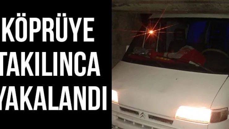 Kayseri'de jandarmadan kaçan 2 hırsızdan biri, kullandıkları kamyonet köprüye takılınca yakayı ele verdi.