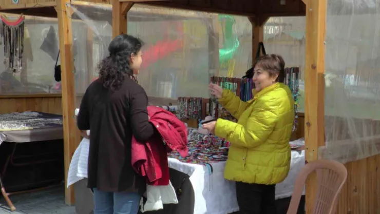 Talas’ın tarihi güzelliklerinin baharında Harman Mahallesi Meydanı’nda her ayın 1. ve 3. Pazar günü kurulan pazarda birbirinden kıymetli el emeği ürünler satışa sunuluyor. El işi tekstil ürünlerinden ahşap ürünlerine kadar pek çok el emeği ürünü vatandaşlarla buluşturan pazarda, ev yemeklerinden, süs eşyalarına kadar birçok ürün tezgahlarda müşterilerini bekliyor. Maharetli Eller Kadın Kooperatifi kurucu üyelerinden Nazmiye Büyüktaşkın; “Bize Talas Belediyesi’nin çok büyük destekleri oldu. Sağ olsun burayı bize hazırlayan Mustafa Yalçın başkanımız oldu. 3 yıldır hanımlar kendi elleriyle yaptıklarını burada satıyorlar. Bu sayede hem sosyal bir etkinlik hem de gelir elde etmiş oluyorlar. Havanın güzel olduğu zamanlarda pazarımıza ilgi gayet güzel ama hava güzel değil ise ilgi biraz da olsa düşüyor. El yapımı takı, çanta, gıda ürünleri, bahçe malzemeleri, turşu, mantı ve börek gibi her şey var” dedi.
