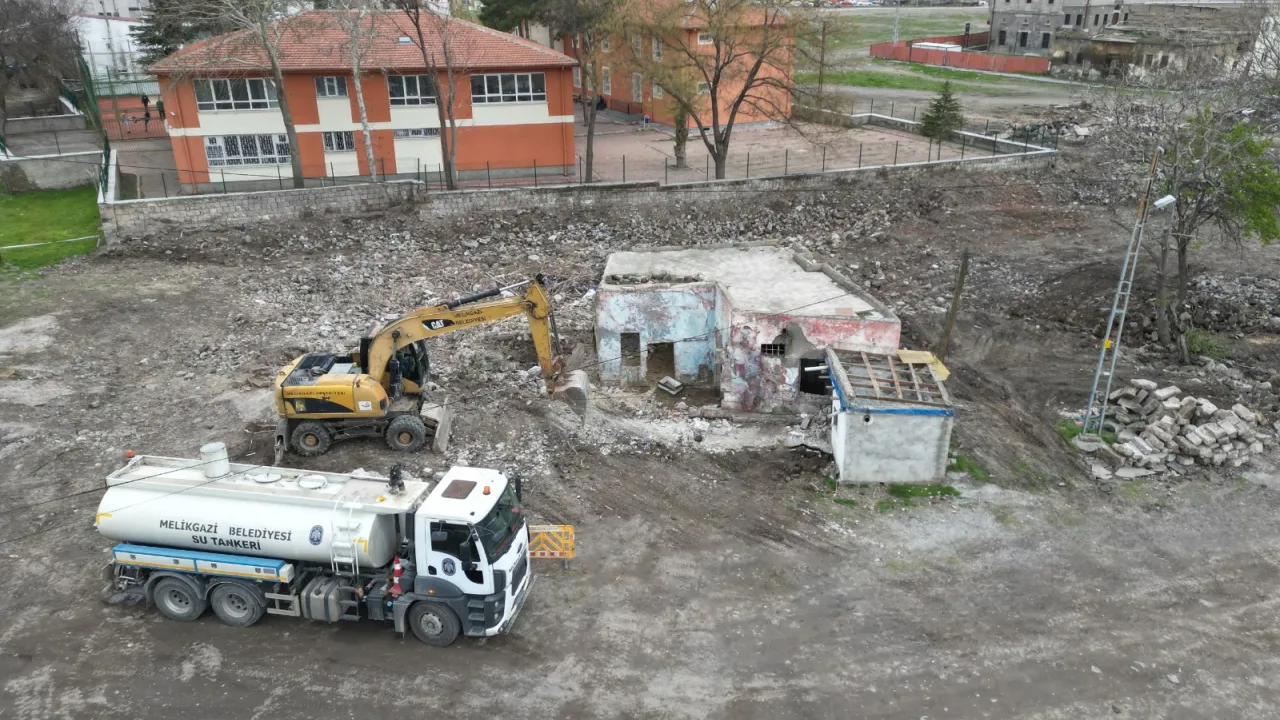 Melikgazi Belediyesi, ilçenin estetiğini bozan, vatandaşların güvenliğini tehdit eden metruk yapıların kaldırılması çalışmasını sürdürüyor.