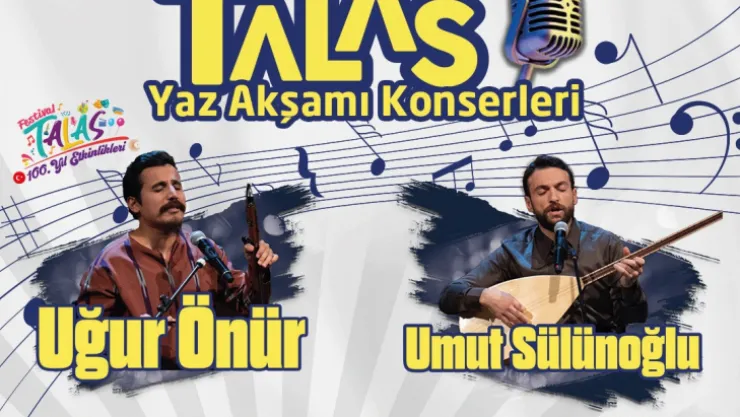 Talas Belediyesi'nin yıl boyunca sürecek 'Festival Talas 100. Yıl Etkinlikleri' çerçevesinde başlattığı yaz akşamları konserlerinden ikincisi hafta sonu gerçekleşecek. Türk Halk Müziği'nin sevilen ikilisi Uğur Önür ve Umut Sülünoğlu, 20 Ağustos Pazar günü sahne alacak.