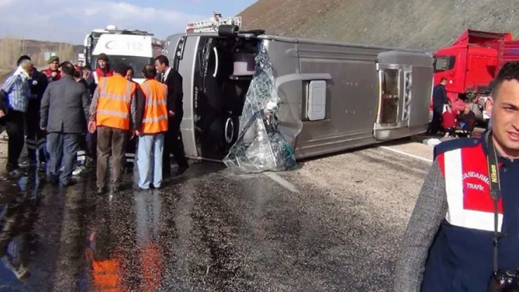 Kayseri'nin Pınarbaşı ilçesinde, Kırıkkale'den Gaziantep'e giden midibüsün devrilmesi sonucunda 14 kişi yaralandı.