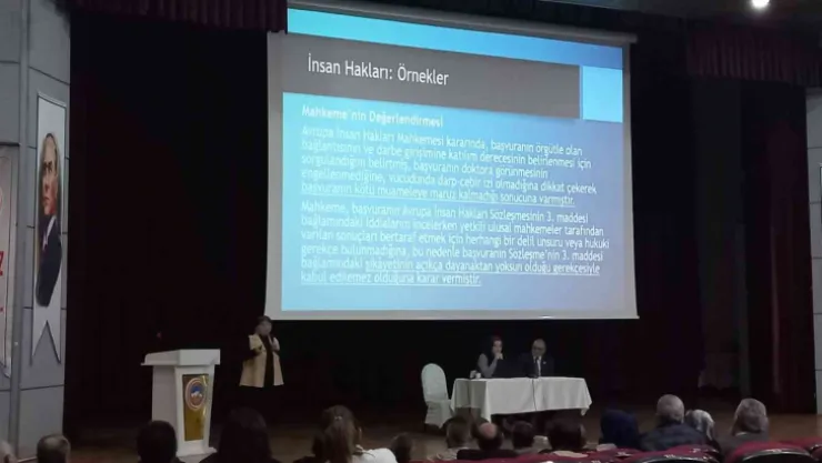 Yatırım İzleme ve Koordinasyon Başkanlığı Tiyatro Salonunda düzenlenen panelde İnsan Hakları Alt Komisyonu İnsan Hakları Eğitimi ve İnsan Hakları Bilincini Geliştirme Komisyonu üyeleri, Abdullah Gül Üniversitesi öğretim üyesi Doç. Dr. Harika Süklün, Anadolu Muhtarlar ve Mahalli İdareler Derneği Başkanı Ali Burul ve İl Milli Eğitim Müdürlüğü Avukatı Fatma Özbey tarafından ’İnsan Hakları Evrensel Bildirgesi’ tarihi süreçleriyle günümüze kadar süregelen evreler muhtarlara örnekleriyle anlatıldı. İnsan hakları konusunda muhtarların karşılaşabileceği sorunların değinildiği toplantıda, insan hakları ve demokrasi kültüründen ayrılmama konusunda muhtarlara büyük bir farkındalık oluşturuldu.