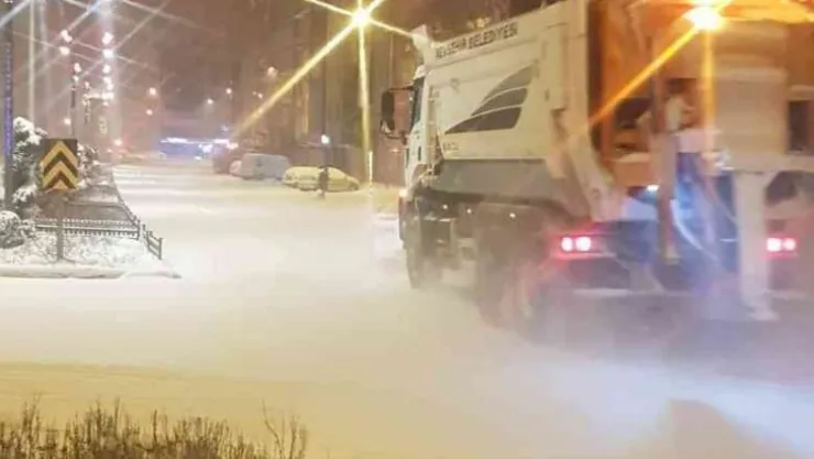 Nevşehir'de kar temizliği ve tuzlama çalışmaları devam ediyor