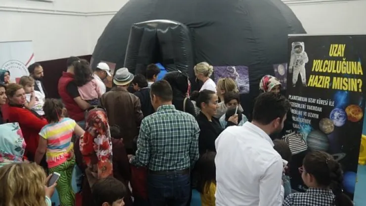 Oluşturulan platformda öğrenciler ve ebeveynleri planetaryum ve teleskop ile uzayın derinliklerini keşfetme şansı buldular.