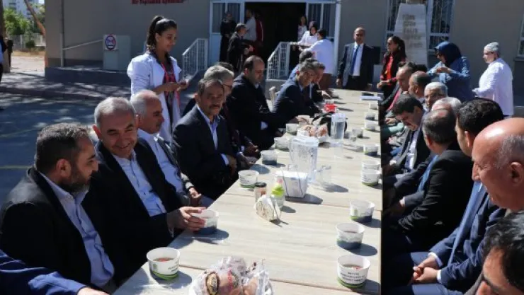İstiklal Özel Eğitim Mesleki Eğitim Merkezi öğrencilerinin yardımı ile hazırlanan aşureler, protokol üyelerine ikram edildi.