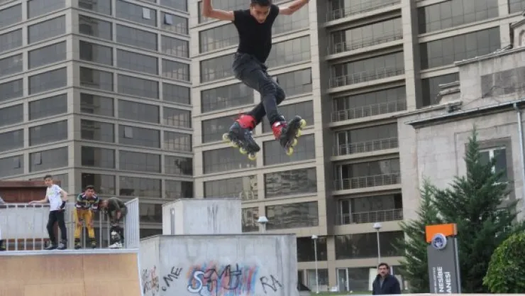 Kayseri Paten ve Kaykay Grubu, büyükşehir belediyesince Mimar Sinan Parkı'nda yaptırılan parkurda ve basketbol sahasında şampiyona hazırlıklarını sürdürüyor.