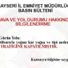 Kayseri'de hava koşulları nedeniyle Pınarbaşı-Gürün yolu çift yönlü olarak araç trafiğine kapatıldı.