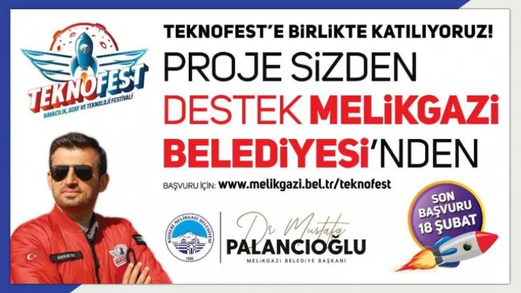 Gençlerin millî teknoloji üretme ve geliştirme konusunda ilgilerini artırmayı amaçlayan Melikgazi Belediyesi dünyanın en büyük havacılık festivallerinden biri olan Teknofest'te gençlerin projesini tanıtacak. Teknofest heyecanına katılmak için son başvuru tarihi 18 Şubat Cuma 2022.