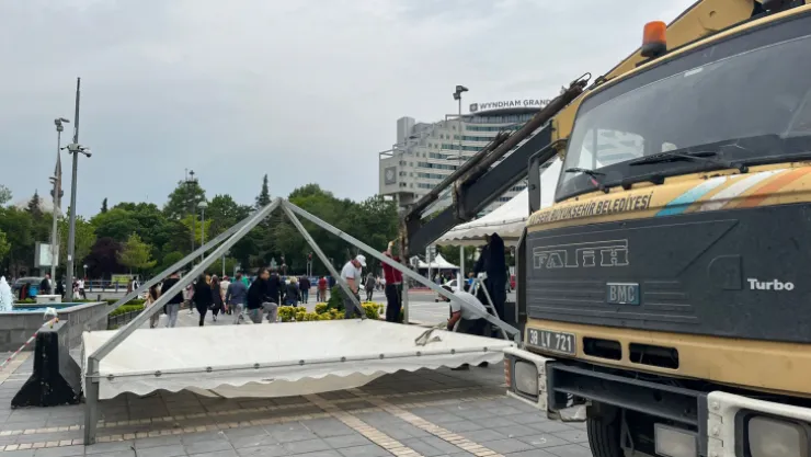 Cumhurbaşkanı Seçimlerinin 2. Tur’u yarın gerçekleşecek. Bu kapsamda seçim yasakları da başladı. Ülke genelinde yarın saat 08.00'de başlayacak oy verme işlemi saat 17.00'de sona erecek. Sabah saatlerinden itibaren seçim günü yasakları uygulanacak. Bu kapsamda da Cumhuriyet Meydanında stant kuran partiler stantlarını, parti bayraklarını ve flamalarını kaldırıyor.