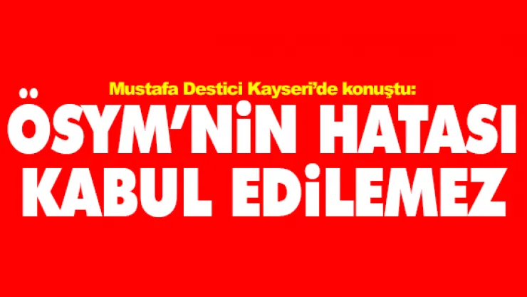 Büyük Birlik Partisi Genel Başkanı Mustafa Destici dün Kayseri'ye geldi. Alperen Ocakları Kayseri İl Başkanlığı'nda basın mensupları ile buluşan Destici, 'ÖSYM'nin üniversite yerleştirme sonuçlarında yaptığı hata kabul edilebilir bir şey değil.' açıklamasında bulundu.