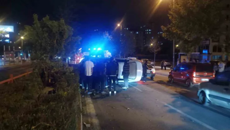 Kayseri’nin Kocasinan ilçesine refüje çarparak takla attıktan sonra yan yanan otomobilde bulunan 3 kişi yaralandı.