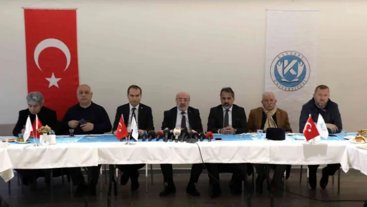 Kayseri Üniversitesi’nde düzenlenen toplantıya, Rektör Prof. Dr. Kurtuluş Karamustafa, Rektör Yardımcıları, Kayseri Gazeteciler Cemiyeti Başkanı Metin Kösedağ, fakülte dekanları, MYO müdürleri, uygulama ve araştırma merkezi müdürleri ve daire başkanları ile yazılı ve görsel medya kuruluşlarının temsilcileri katıldı.