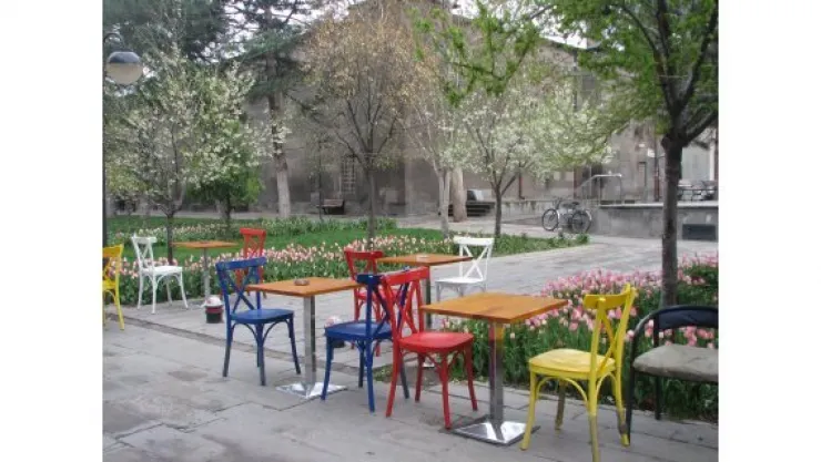 Hunat’ta çay ocağı işleten esnaf da çevredeki renk dokusuyla ahenkli olsun diye sandalyelerini güzelce boyatmış. İnsanın bu güzelliği görünce hemen oturup tavşankanı bir çay içesi gelmiyor mu?