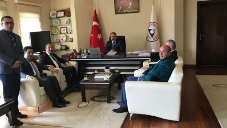 Kayseri Sağlık-Sen Yönetim Kurulu Üyeleri Erciyes Üniversitesi Rektörü Prof. Dr. Muhammet Güven'i makamında ziyaret etti. Üniversitede görev yapan personelin özlük hakları ile ilgili taleplerini ileten yönetim kurulu üyeleri, gerekli çalışmanın yapılması için destek istediler.