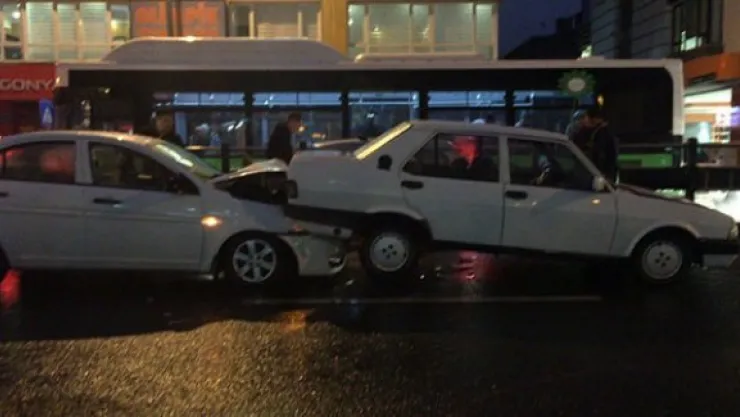 Edinilen bilgiye göre Kocasinan ilçesine bağlı İstasyon Caddesi'nde meydana gelen kazada, yağışın da etkisiyle kayganlaşan yolda 38 VP 579 plakalı otomobilin hızını alamayarak 58 ES 797 plakalı otomobile arkadan çarptığı öğrenildi. Çarpmanın etkisiyle 58 ES 797 plakalı otomobil, arkadan çarpan 38 VP 579 plakalı otomobilin üzerine çıktı.