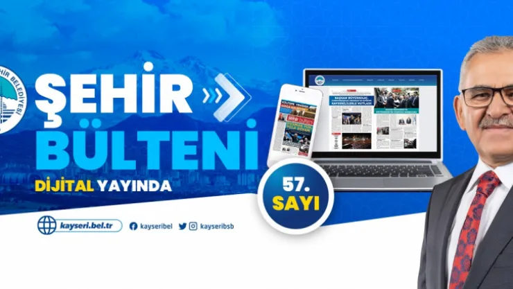 Şehir Bülteni’nin 57. sayısında, Başkan Büyükkılıç’ın vizyon projelerinin yanı sıra, Ulaşım A.Ş., KAYMEK, Erciyes A.Ş. ve KASKİ’nin faaliyetleri gibi bir çok konu bulunuyor. Vatandaşlar, Büyükşehir Belediyesi Şehir Bülteni’nin dijital yayınına www.kayseri.bel.tr adresinde Hizmetler > Online Hizmetler > Şehir Bülteni bölümünden ulaşabiliyor.