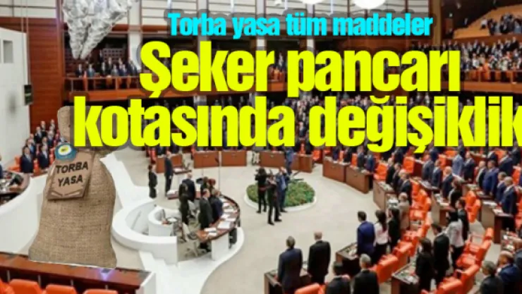 Torba yasa nedir, torba yasada neler var, torba yasa kabul edilen tüm maddeler neler sorusu merak konusu oldu. Torba yasa 2018 TBMM'de görüşüldü ve genel kurulunda kabul edildi. Torba yasada dikkat çeken maddelerden birisi de Şeker pancarı kotasında değişiklik oldu, peki detayları neler?