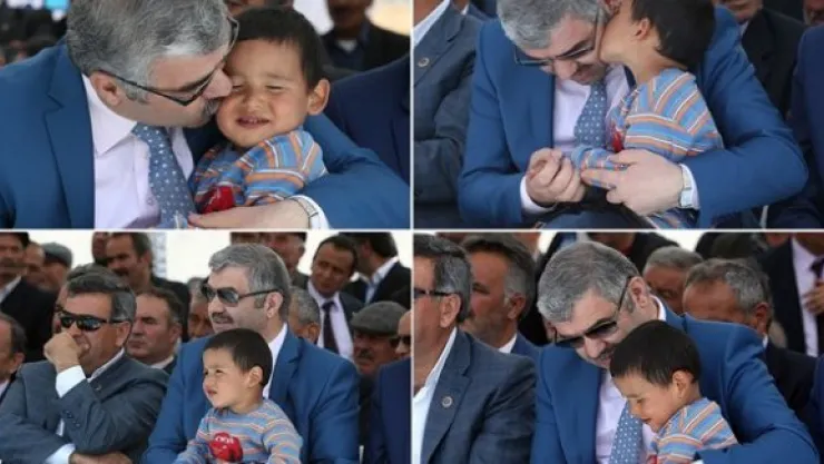 Büyükşehir Belediyesi tarafından Sarız'da düzenlenen toplu açılış ve temel atma töreninde objektiflere, Başkan Çelik ile 3-4 yaşlarındaki bir çocuk arasındaki muhabbet yansıdı.