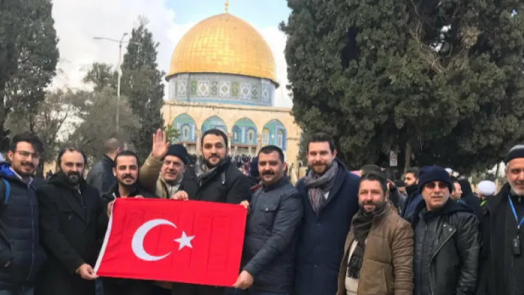 Ekip bugün Cuma namazı çıkışı Mescid-i Aksa önünde Türk bayraklarıyla fotoğraf paylaşmıştı.