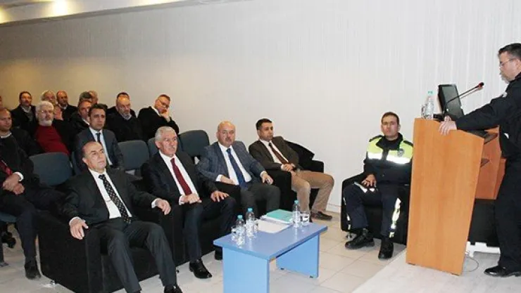 Emniyet Müdürlüğü Süleyman Terzi Toplantı salonundaki toplantıya Vali Yardımcısı Mehmet Emin Avcı, İl Milli Eğitim Müdürü Osman Elmalı, Minibüsçüler ve Servisçiler Odası Başkanı Yavuz Ay ile servis işletmecileri katıldı.