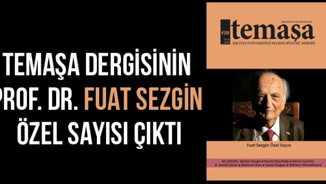 Erciyes Üniversitesi (ERÜ) Edebiyat Fakültesi Felsefe Bölümü tarafından çıkartılan 'Temaşa' Dergisinin 10. sayısı Prof. Dr. Fuat Sezgin özel sayısı olarak çıkarıldı.