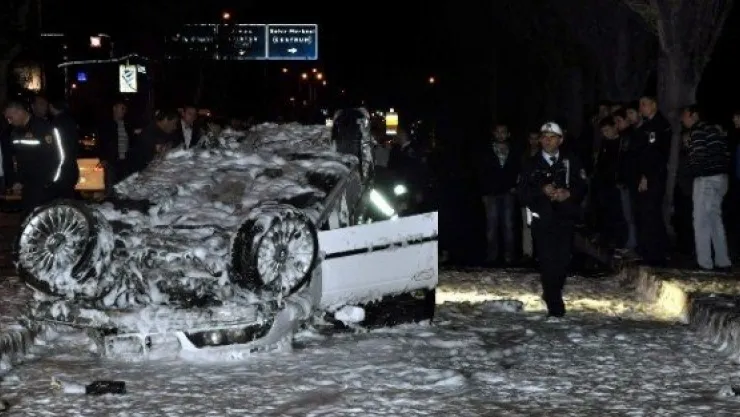 Ters Dönen Araçtan Burnu Bile Kanamadan Kurtuldu