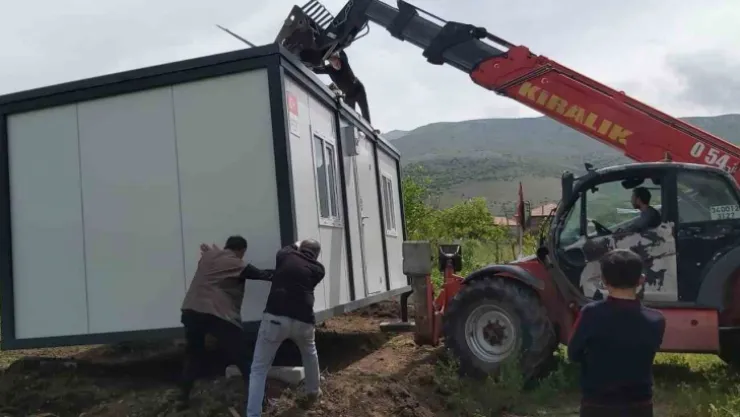Tomarza'da evleri ağır hasar gören vatandaşlara konteynerleri verildi