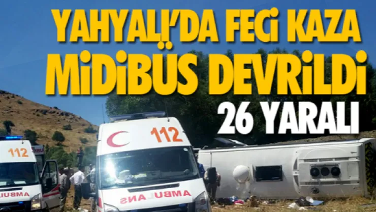 Kayseri'nin Yahyalı ilçesinde tur midibüsünün devrilmesi sonucu ilk belirlemelere göre 26 kişi yaralandı.